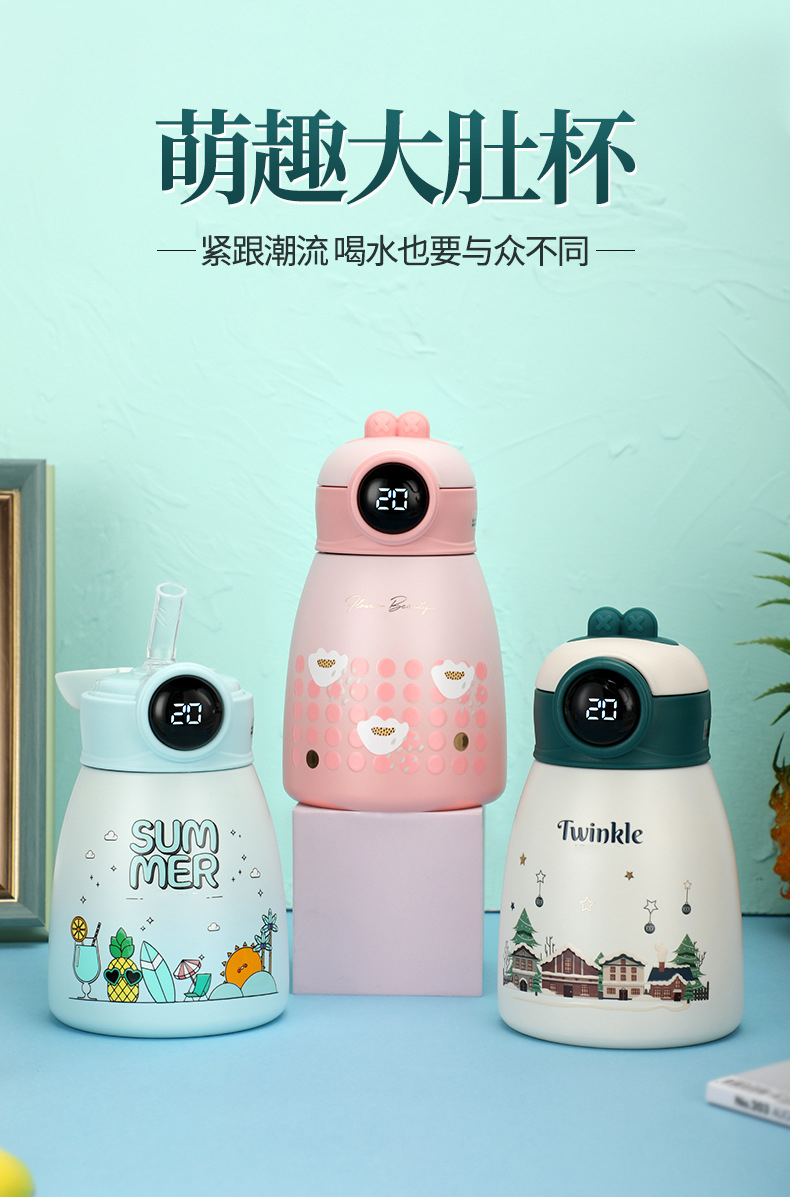 316不銹鋼智能顯溫學(xué)生兒童保溫杯現(xiàn)貨新品大肚杯子