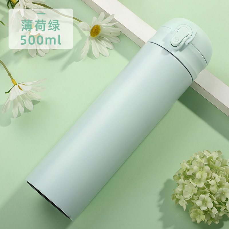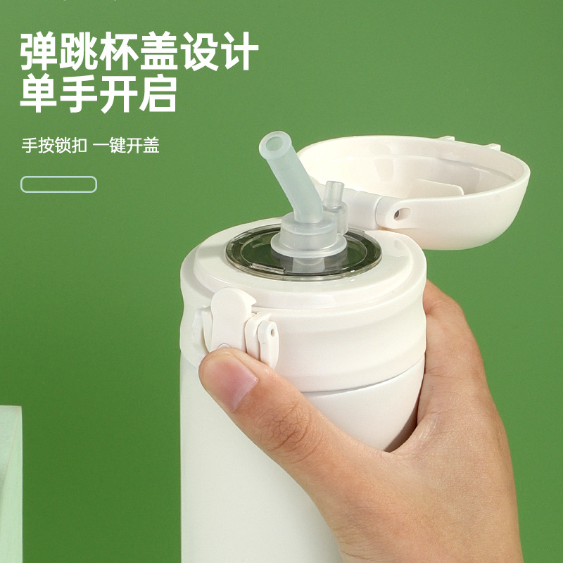 高顏值316彈跳吸管保溫杯男女生鏡面內膽水杯商務車載杯子廣告杯