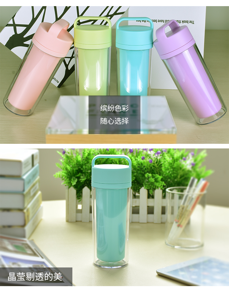 運動水杯 便攜防漏隨手杯 學生杯子 情侶創意水杯子 雙層塑料杯子 300ml